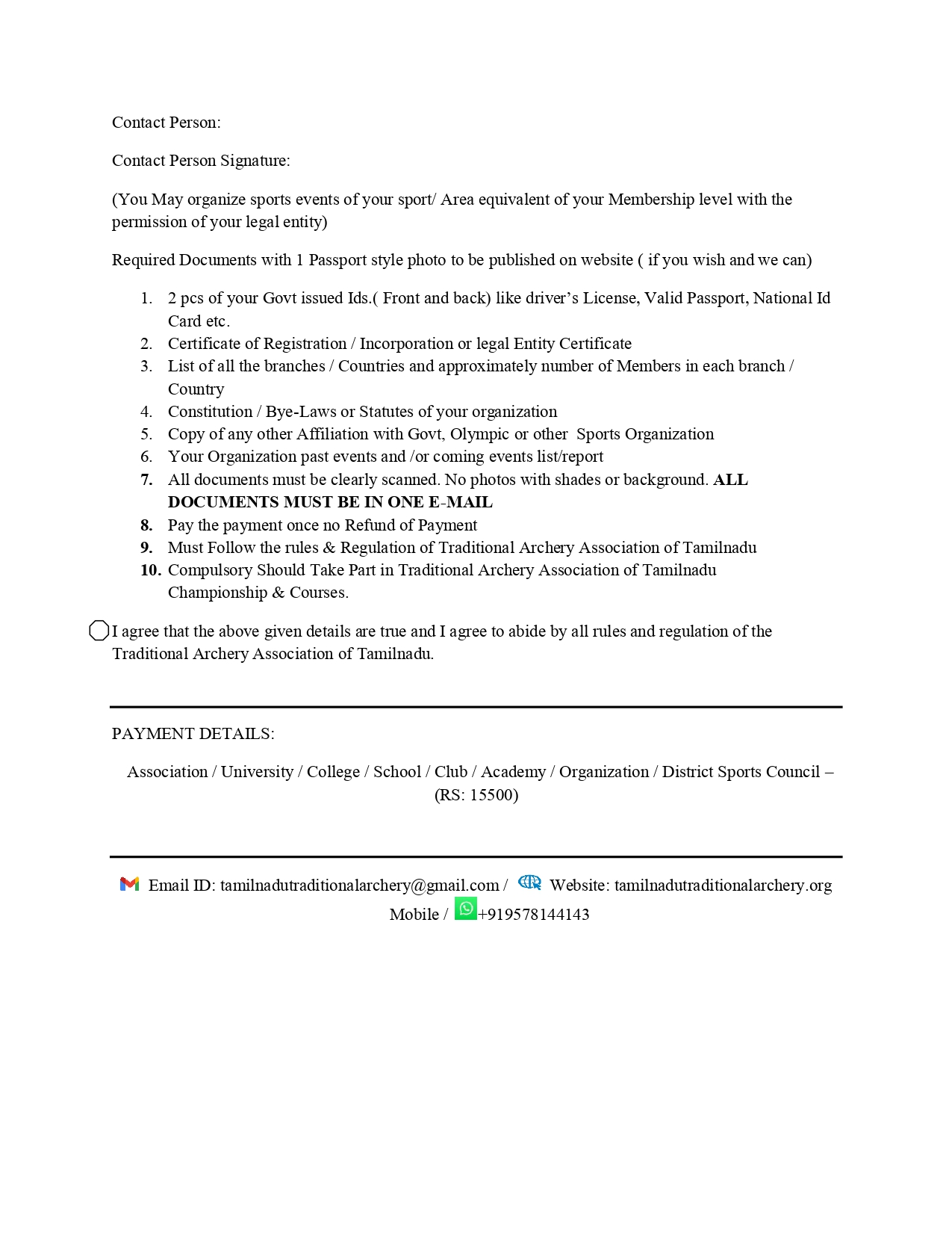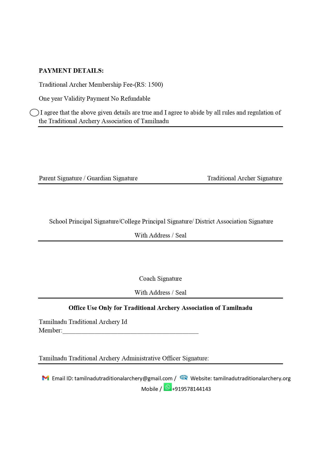 Yearly Once Conducting the world championship to Identifying the Talented Traditional Archer and promoting and Develop the Traditional Archery Sport through the world wide this was the motto of the Traditional Archery Association of Tamilnadu